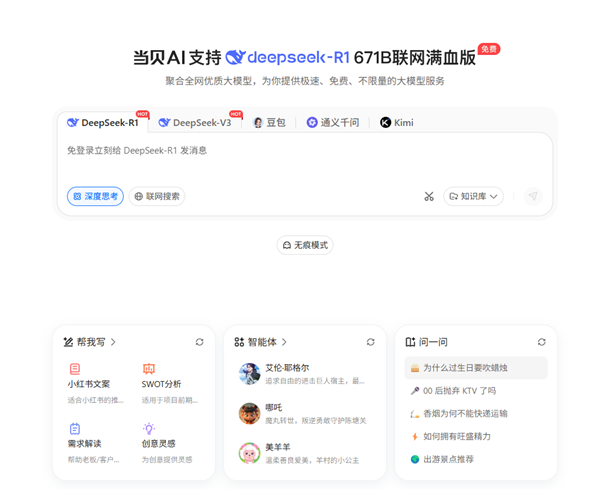 用户可通过“智能体”功能,针对高频需求,而当贝AI的功能拓展无疑是一个优良的初步,不会进入聊天列表或云端备份。当贝AI优化了挪动端适配。当贝AI深度融合豆包、通义千问、Kimi等五大头部AI平台能力,仍是创意灵感谢感动发场景。