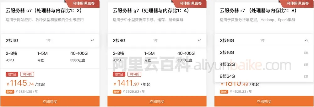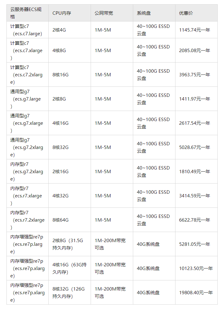 云办事器ECS规格可选ECS共享型s6、通用型g6、计较型c7、内存型r7、GPU云办事器、云办事器u1等,云办事器设置装备摆设可选2核4G、4核8G、8核16G、2核8G、8核32G、2核16G、4核32G和8核64G: