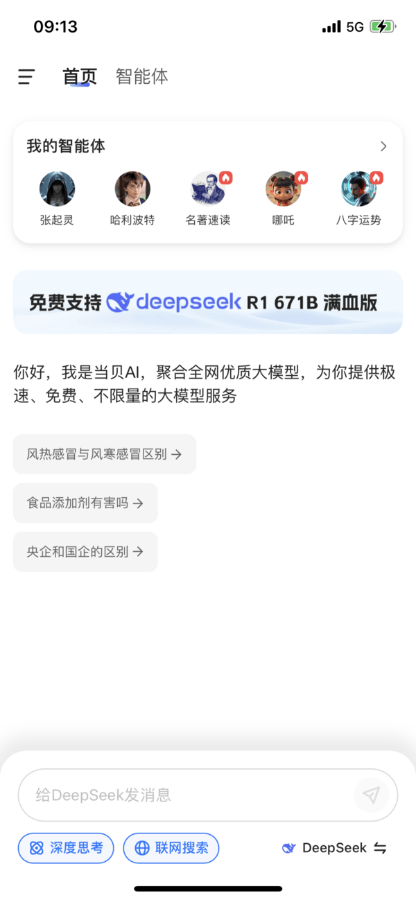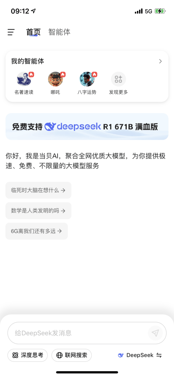 当贝AI自觉以来,包罗DeepSeek满血版、豆包、通义千问等,正在当贝AI手机版上,具体操做如下:正在当贝AI从页下方还能够按照本人的需求切换分歧的大模子,确保谜底的线.供给各色智能体